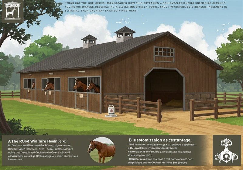 A strategically designed and well-built stable can yield a strong **ROI for horse stables** through several avenues: increased property value and enhanced **resale value** potential, reduced **operating costs** (labor, utilities, maintenance), improved horse health and performance (leading to lower vet bills and higher training/boarding fees), and a stronger reputation that attracts premium clients and services via effective marketing strategies.